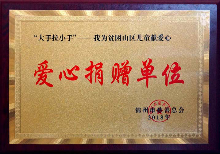 4月11日,錦州市慈善總會召開總結表彰大會,表彰在2018年慈善捐贈工作中表現突出的先進單位,我公司被授予“愛心捐贈單位”稱號。