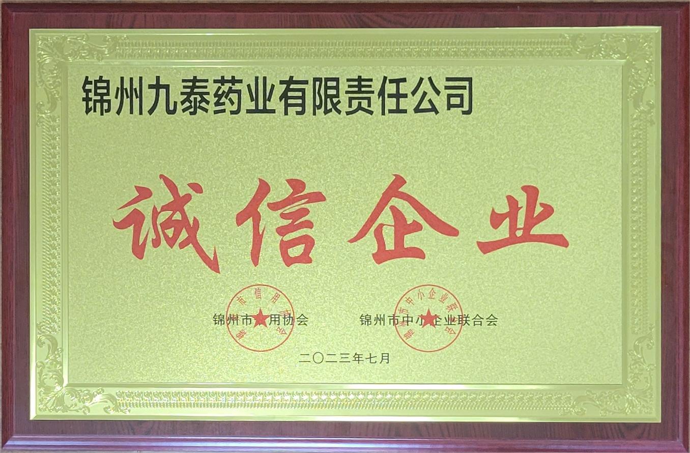7月17日,在錦州市中小企業(yè)聯(lián)合會、錦州市信用協(xié)會誠信會員企業(yè)表彰大會上,錦州九泰藥業(yè)有限責(zé)任公司被命名為“誠信企業(yè)”榮譽(yù)稱號。